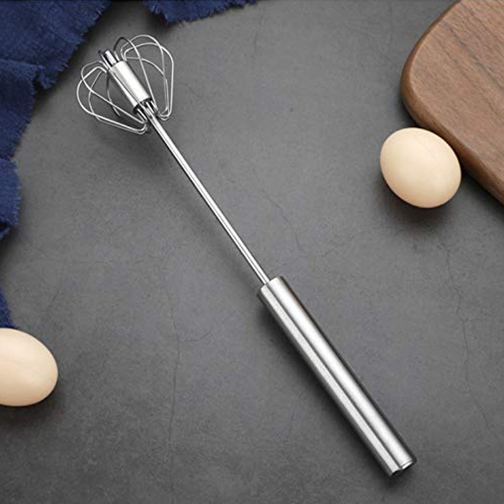 Medium Stainless Steel Egg Whisk, Hand Push Rotary Whisk Blender Versatile Milk Frother Hand Push Mixer Stirrer Make Froth, Foam & Whipped Cream Semi Auto Egg Beater Frother, Stirrer, Blending, Whisking, Beating, Stirring Lassi / Butter Milk Maker / Mixer (1 Pc / 30 Cm)